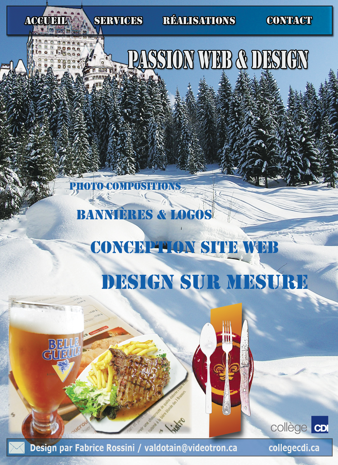 Certains le savent, d’autres non, après 25 années passées aux fourneaux, je vire de bord pour prendre un nouveau cap … Amoureux de la photo et de la vidéo depuis longtemps, ayant monté moultes sites web avec des outils de bric et de broc, j’ai franchi le pas et j’étudie depuis octobre dernier le Web Design au Collége CDI de Québec. Dans l’espoir de vivre de cette nouvelle passion !