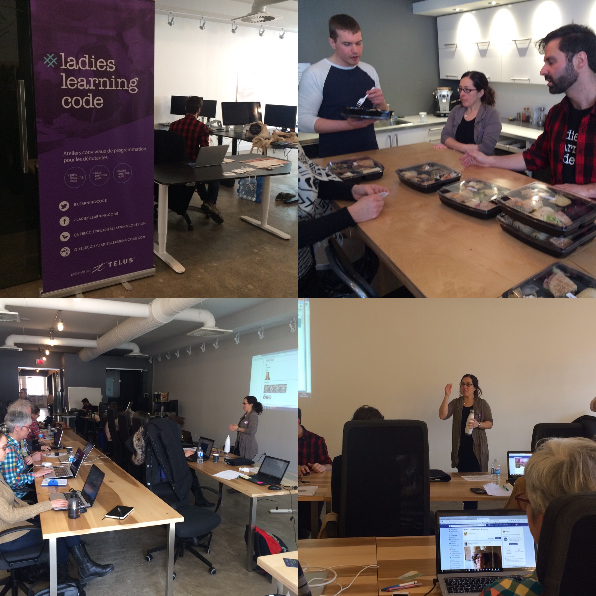 Et voilà le moment où Ladies Learning Code survient dans mon histoire. Ce mouvement qui s’est donné pour mission de mettre les TI à la portée des femmes, à travers tout le Canada, a besoin de mentors bénévoles pour aider à l’encadrement de ses élèves. J’ai donc participé à mon premier atelier il y a quelques jours. Le propos, l‘html5 et le css3 qui sont les langages de base nécessaires à la construction d’une page web, sont ceux que je suis censé connaitre le mieux. Mais je dois admettre avec humilité que ces notions s’étaient légèrement diluées depuis la fin de ma formation et qu’à plusieurs reprises je n’ai pu fournir mon aide comme j’aurais du. Depuis lors, je passe la moitié de mon temps libre à écrire et ré-écrire des pages web afin d’assimiler à nouveau les subtilités, parfois déconcertantes du langage html et surtout du css.