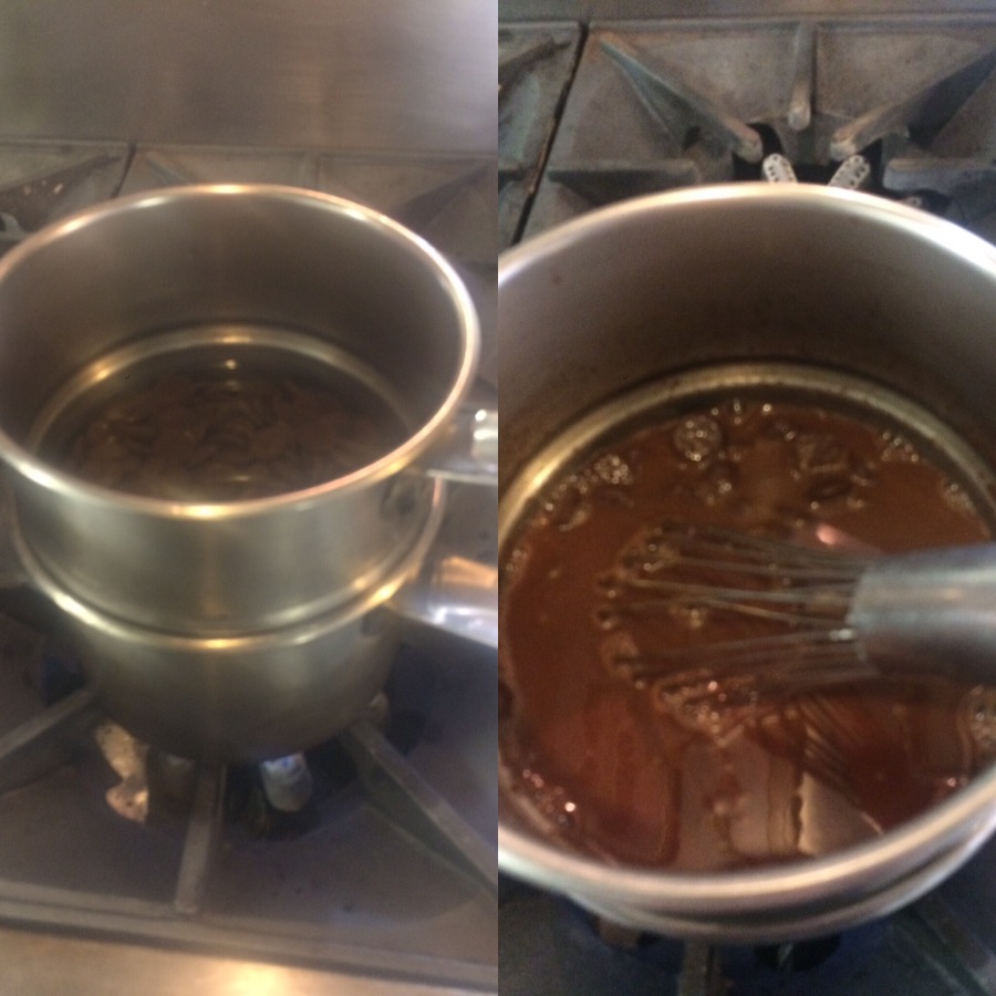Au bain-marie ( si possible ) faire fondre le chocolat dans l’eau et laisser cuire une dizaine de Minutes.