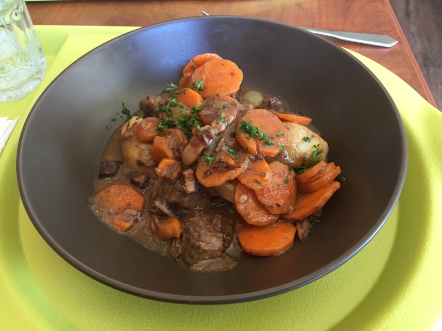 Une soupe délicieuse, un bœuf bourguignon digne des meilleures tables et en dessert, de délicieuses pâtisseries qui séduiraient les becs les plus fins. Même le café …